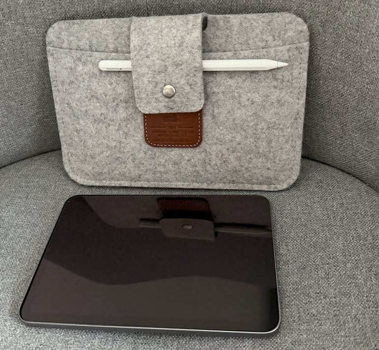 Mein I-Pad für "zwischendurch" ist ein I-Pad-Mini. Ich habe dafür einen extra Pencil-Pro, weil mir die ewige Hin- und Herkoppelei zwischen den Pencils und I-Pads auf die Nerven ging. Ein Pencil-Pro kann immer nur mit einem I-Pad verbunden sein. So hat jedes I-Pad seinen eigenen Stift, mit dem es permanent gekoppelt ist. Durch die kleine Schlaufe an der Tasche für den Pencil besteht keine Verwechselungs-Gefahr und man kann den Pencil auch nicht so leicht verlieren.