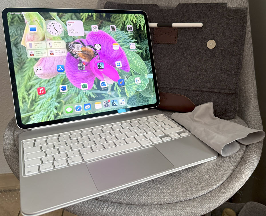 Ergänzend habe ich dafür die externe Tastatur von Apple, den Pencil-Pro und die Bluetooth-Maus.